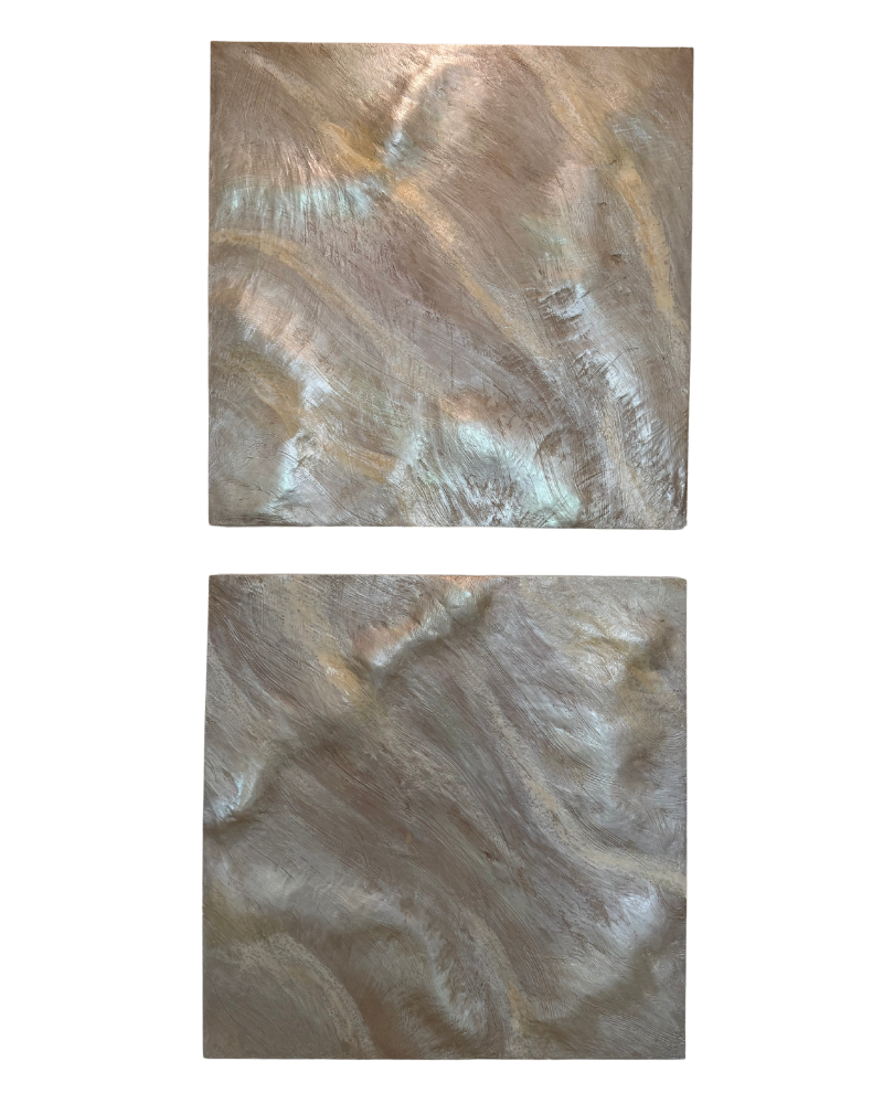 Crafted by artist Kelly Gowan, Eternal Drifts is a captivating series of custom sculptural panels that shimmer with light-reflective movement and depth. Each piece is hand-sculpted and finished to highlight a flowing, organic texture reminiscent of wind-swept sand or ocean currents. The soft metallic tones and multidimensional surface create a subtle yet striking presence, making each panel a statement in modern refinement. Designed to be displayed individually or as a pair, these works elevate any space with their serene elegance and tactile sophistication. A true blend of art and sculpture.