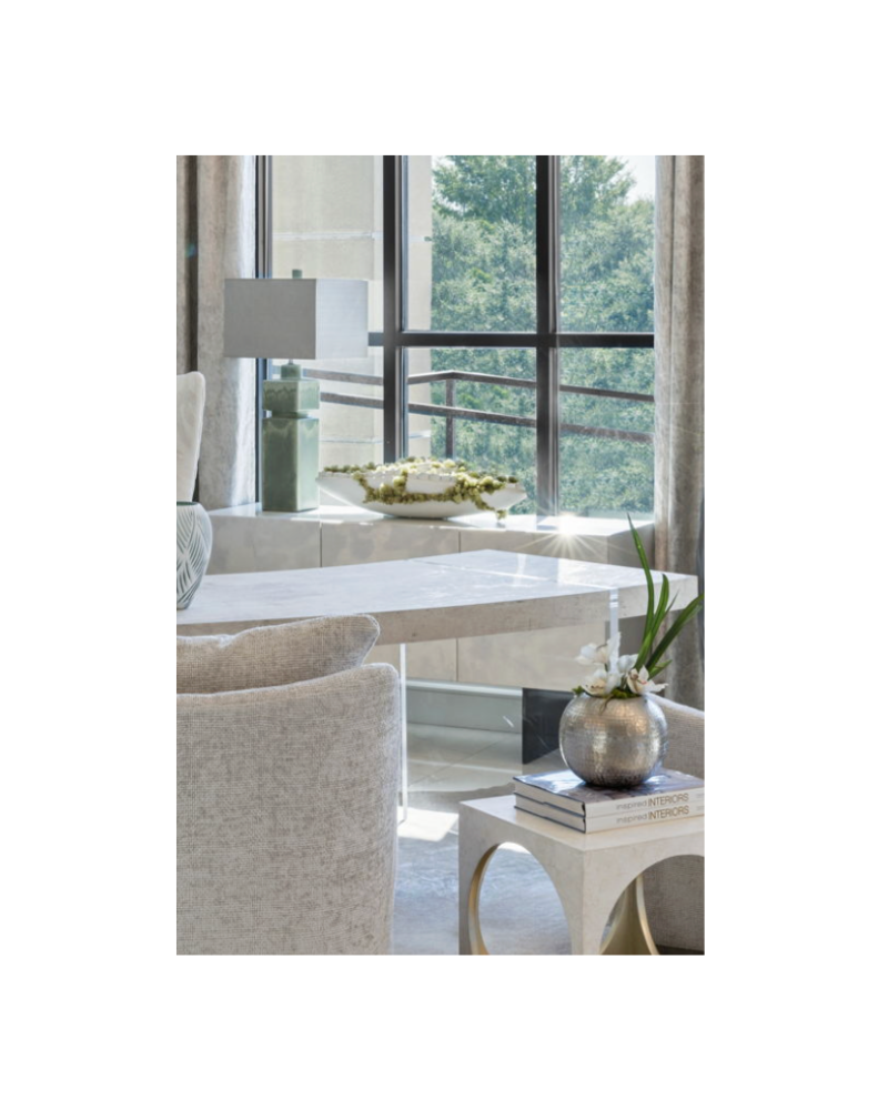 This sculptural faux moss arrangement features a soft white vessel filled with organic, textured moss elements that create a natural, layered look. The elongated form adds visual interest while the lush green tones bring an earthy, calming presence to consoles, shelves, or dining surfaces. A timeless accent that delivers the beauty of nature with effortless, maintenance-free styling.