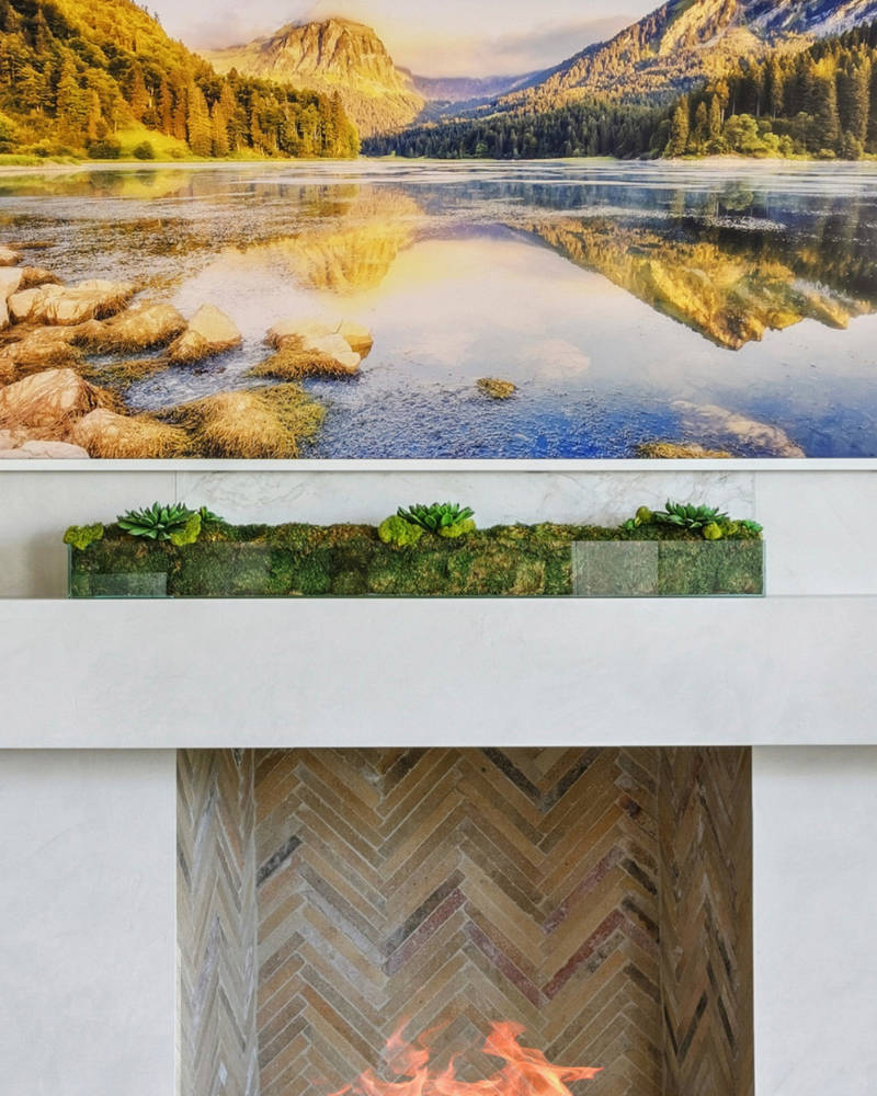 A sleek botanical accent rooted in texture, tone, and natural beauty. The Verdant Edge Arrangement brings nature’s calm into contemporary spaces with a sculptural mix of preserved moss and lifelike succulents. Set in a geometric glass vessel, its long, linear design makes it perfect for mantels, consoles, or dining tables. Each arrangement is handcrafted and custom-designed for effortless, maintenance-free greenery that complements both modern and organic interiors.